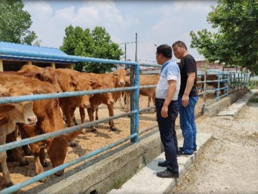 2021年6月10日下午马云教授一行到南阳黄牛科技中心和南阳良种黄牛繁育场进行了调研,马云教授同南阳黄牛科技中心王玉海、王建钦主任和张玉才场长就南阳牛的遗传改良与繁育创新、如何提高社会关注度以及杂交利用等方面展开交流。南阳牛是全国五大良种黄牛之一,国家农业农村部首批列入“国家畜禽品种保护名录”的牛品种之一。马云教授提出要进一步加强开展南阳牛遗传资源保护与利用科技创新合作,为接下来开展对南阳牛的屠宰实验以及样品采集,分析获得黄牛杂交改良关键性状及基因奠定基础。本次调研活动加强了与地方畜禽场的合作和交流,为今后的进一步深度合作奠定了良好的基础。
