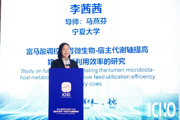 大会围绕“五新”展开特邀报告/前沿论坛、杰出青年科学家论坛、拔尖创新青年论坛等系列活动,全面呈现行业战略突破、科技赋能、模式创新、全球对话与青年力量等核心内容。会上,马云教授作为特邀嘉宾,作《荷斯坦牛长寿性状的选育与应用》主题报告,系统分享了重点实验室在奶牛育种领域的研究成果;马燕芬研究员担任会议报告主持人及拔尖创新青年论坛评委,助力青年学术交流。其指导的博士研究生李茜茜,在拔尖创新青年论坛作《富马酸调控瘤胃微生物-宿主代谢轴提高奶牛饲料利用效率的研究》口头汇报;马学虎、王川川、沙志行等研究生以墙报形式展示研究成果,全面展示重点实验室在奶肉牛领域的最新科研进展。