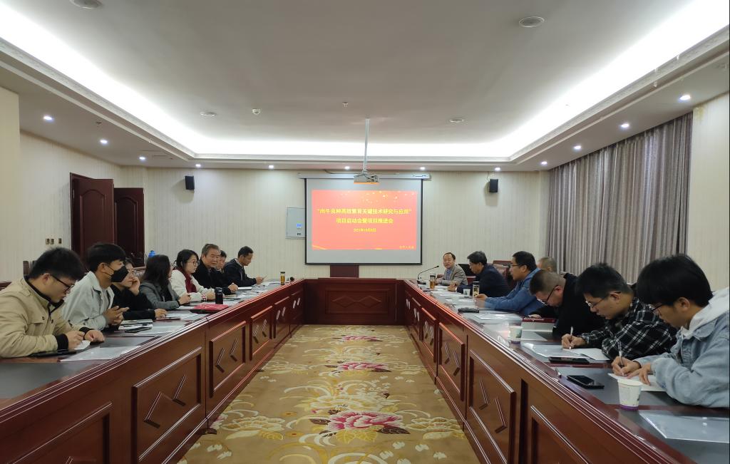 包斌武/文,王晋鹏/图】2021年10月8日,宁夏回族自治区重点研发计划“肉牛良种高效繁育关键技术研究与应用”项目启动会暨项目推进会在宁夏固原瑞丰国际饭店会议室召开。会议由项目负责人懂球体育王兴平教授主持,出席此次会议的人员有:项目咨询专家(固原市畜牧技术推广服务中心主任张国坪研究员、懂球体育马云教授)、子课题负责人(西北农林科技大学雷安民教授团队的高志敏研究员、宁夏农林科公司动物科学研究所梁小军所长和懂球体育杨易副教授)、项目合作单位固原富明农业科技发展有限公司总经理咸海龙,以及参与项目任务的科研骨干及研究生。