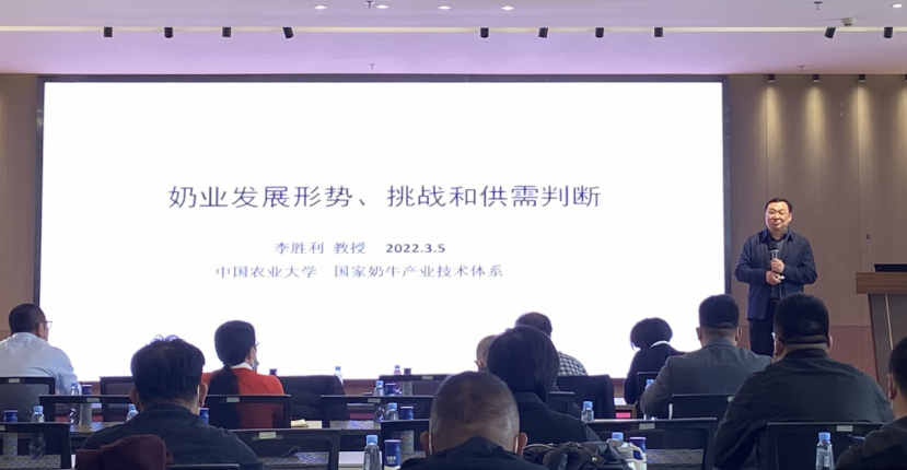 会上,国家奶牛产业技术体系首席专家李胜利教授围绕奶业发展形势、挑战和供需判断这一主题,从世界政治经济形势、世界奶业生产形势、乳制品价格、我国奶业及养殖业面临的挑战和中国奶牛养殖业需要的关键技术等方面作了报告,全面分析了国内外奶业的发展趋势,提出了针对我国奶牛产业瓶颈问题的关键技术。李教授认为,中国奶业是朝阳产业,尽管在发展过程中存在一些反复和挫折,但总体仍处于上升趋势,且未来将会有20-30年的黄金期。报告结束后,多个奶牛养殖企业的代表人向李教授请教了目前奶产业中存在的棘手问题,李教授均给出了科学、合理、可实施的建议。马云教授就宁夏地区奶牛DHI测定、奶牛生产性能精准测定及种业振兴等产业发展的实际实际问题征求建议,李教授提出要把营养状况监测落实到牛群,将DHI测定和体型性状有效结合等一系列建设性意见,切实为宁夏地区奶产业的发展提供了战略性的发展思路和切实可行的解决办法。