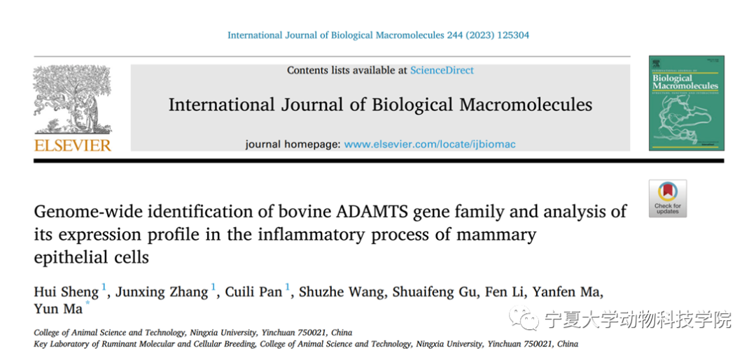 近期,公司马云教授领衔的宁夏优势特色牛产业科技创新团队在国际知名学术期刊《International Journal of Biological Macromolecules》(IF=8.2,中科院1区top)发表题为“Genome-wide identification of bovine ADAMTS gene family and analysis of its expression profile in the inflammatory process of mammary epithelial cells”的研究论文。