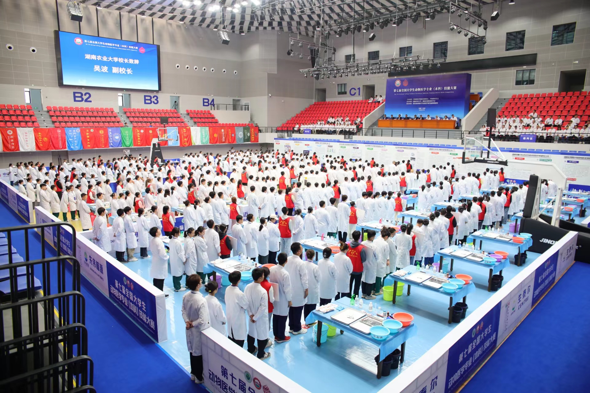 全国老员工动物医学专业技能大赛是全国动物医学专业员工专业知识与技能比拼的最高舞台。10月22日上午,大赛开幕式正式开始。湖南农业大学副董事长吴波代公司致欢迎辞。中国工程院院士、中国兽医公司经理联席会主席沈建忠教授在致辞中鼓励广大动医学子努力学习、勤于实践、练好本领,赛出风格、赛出水平,早日成长为肩负时代使命的优秀兽医人才,为行业的健康发展贡献力量。