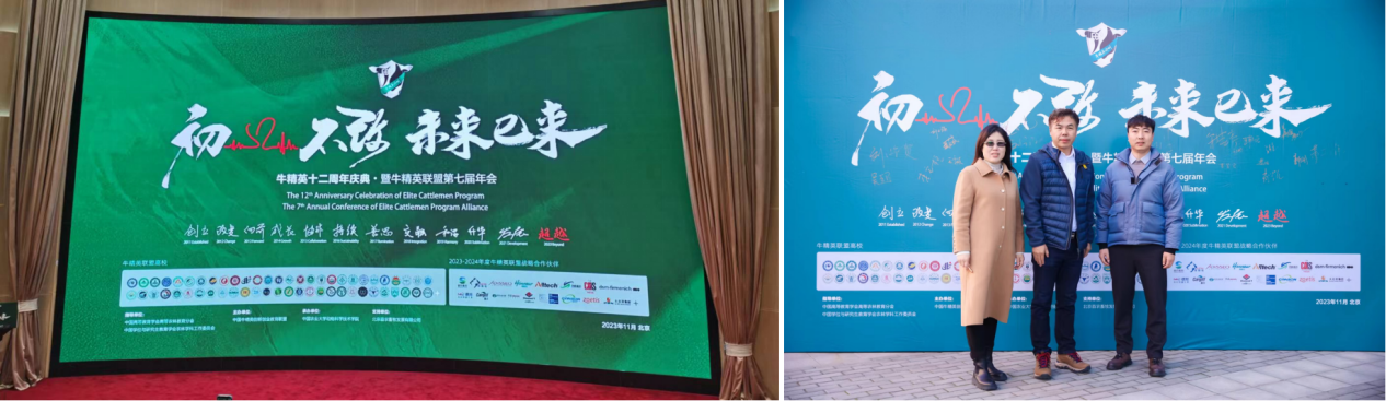 2023年11月10-11日公司马燕芬研究员和马玉林博士受中国牛精英创新创业教育联盟邀请前往中国农业大学参加牛精英十二周年庆典暨牛精英联盟第七届年会。