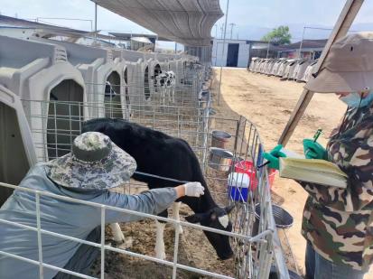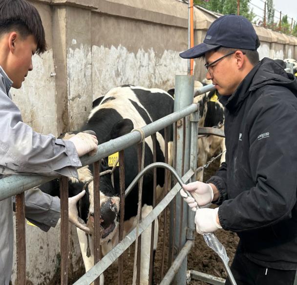 项目负责人马燕芬研究员和子课题负责人徐晓锋教授组成的科研团队在宁夏农垦牛羊肉食品有限公司开展了奶公犊哺乳期饲养关键技术研究和断奶公犊生长发育调控关键技术研究,团队成员通过测定哺乳期和断奶前后奶公犊日采食量、日增重、体尺体长、胃肠道内容物等指标,从常乳/开食料-胃肠道-生长发育轴解析奶公犊早期腹泻和断奶后生长缓慢的原因,建立起适宜奶公犊生长发育的开食料配方,探究出断奶后奶公犊机体生长和消化系统协同发育的营养需要和饲养管理模式,助推宁夏奶业-肉牛产业高质量发展。