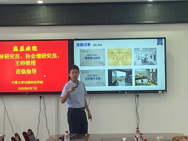 会上,王帅教授分享了其团队在蠕虫对宿主肠道微生态及免疫调控模式方面的研究进展;孙会增研究员系统介绍了浙江大学奶业科学研究所的发展历程、研究方向与团队构成,并重点阐述了在粗饲料增效、乳品质量提升、新型饲用酶与微生物制剂创制应用及功能性乳酸菌开发等领域的研究成果;唐中林研究员则围绕家畜重要经济性状的遗传密码解析展开分享,为参会人员带来了启发。随后,马云教授详细介绍了懂球体育的学科布局、科研团队及特色研究方向。