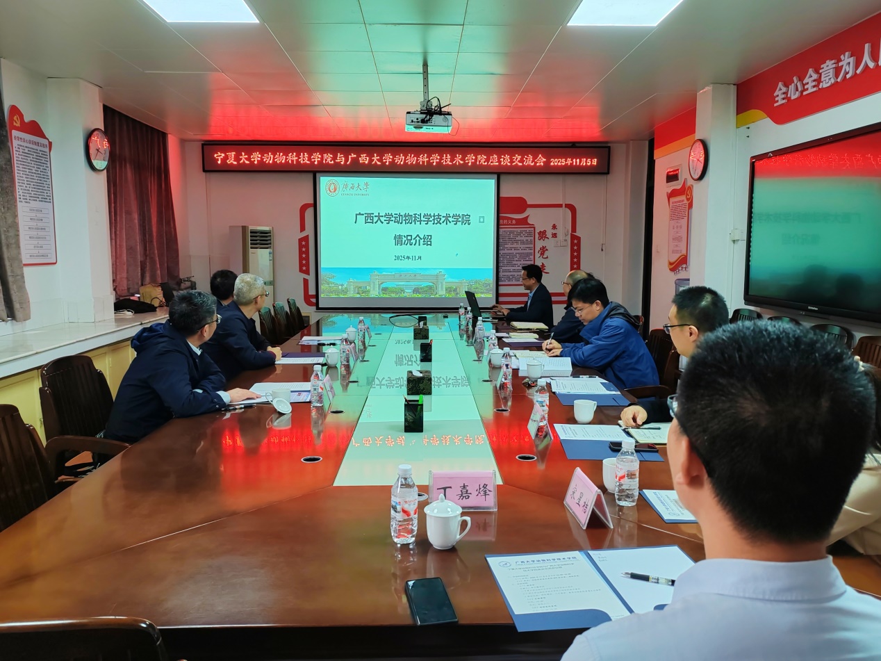 11月5日,公司李继东副书记、许立华教授和龚振兴研究员前往广西大学动物科学与技术公司,座谈会上,双方分别介绍了各自公司的相关情况,就团队建设、人才培养、博士点申报、教学动物医院管理及运营等进行了深入交流和探讨,并参观了广西大学教学动物医院。广西大学动物科学与技术公司韦小强书记、陆阳清经理、何家康副经理等领导和老师参加了此次交流活动。期间,在广西大学动物科学与技术公司蒋钦杨副经理陪同下,参观了位于青秀区刘圩镇谭村的田野牧歌肉牛产业示范区。