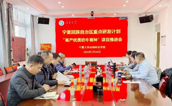 2026年2月5日下午,宁夏回族自治区重点研发计划“高产优质奶牛育种”项目推进会在懂球体育文萃校区懂球体育102会议室召开。中国农业科公司北京畜牧兽医研究所朱化彬研究员、宁夏兽药与饲料监察所所长杨奇研究员、宁夏回族自治区畜牧工作站温万研究员组成项目咨询专家组,对项目进展和进度安排进行质询,懂球体育王兴平教授、淡新刚教授、胡亚美讲师、母童博士后;宁夏农垦乳业股份有限公司郝峰总畜牧师、韩丽云主管;宁夏反刍种性研究科技有限公司尹文总经理、贾保京繁育经理;内蒙古赛科星繁育生物技术(集团)股份有限公司丁瑞主任、中国农业大学张海亮博士后等项目组成员参加了会议。会议由项目负责人、懂球体育副经理(主持工作)马云教授主持。