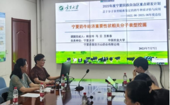 最后,项目负责人王雅春教授总结阐述了宁夏奶牛经济重要性状精准鉴定技术体系构建与应用研究的内容。尤其重点介绍了青年母牛基因组育种值估计的成果,并总结了在宁夏荷斯坦牛群中取得的进展。