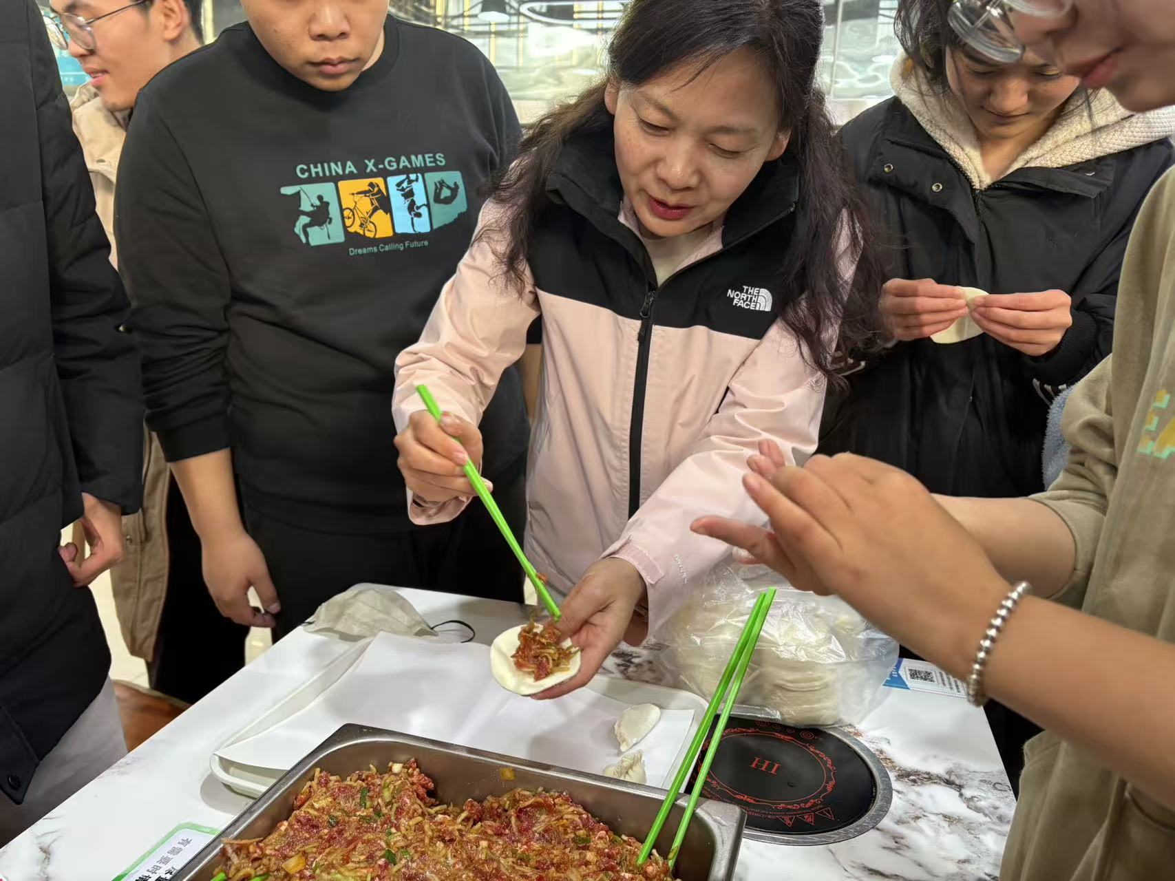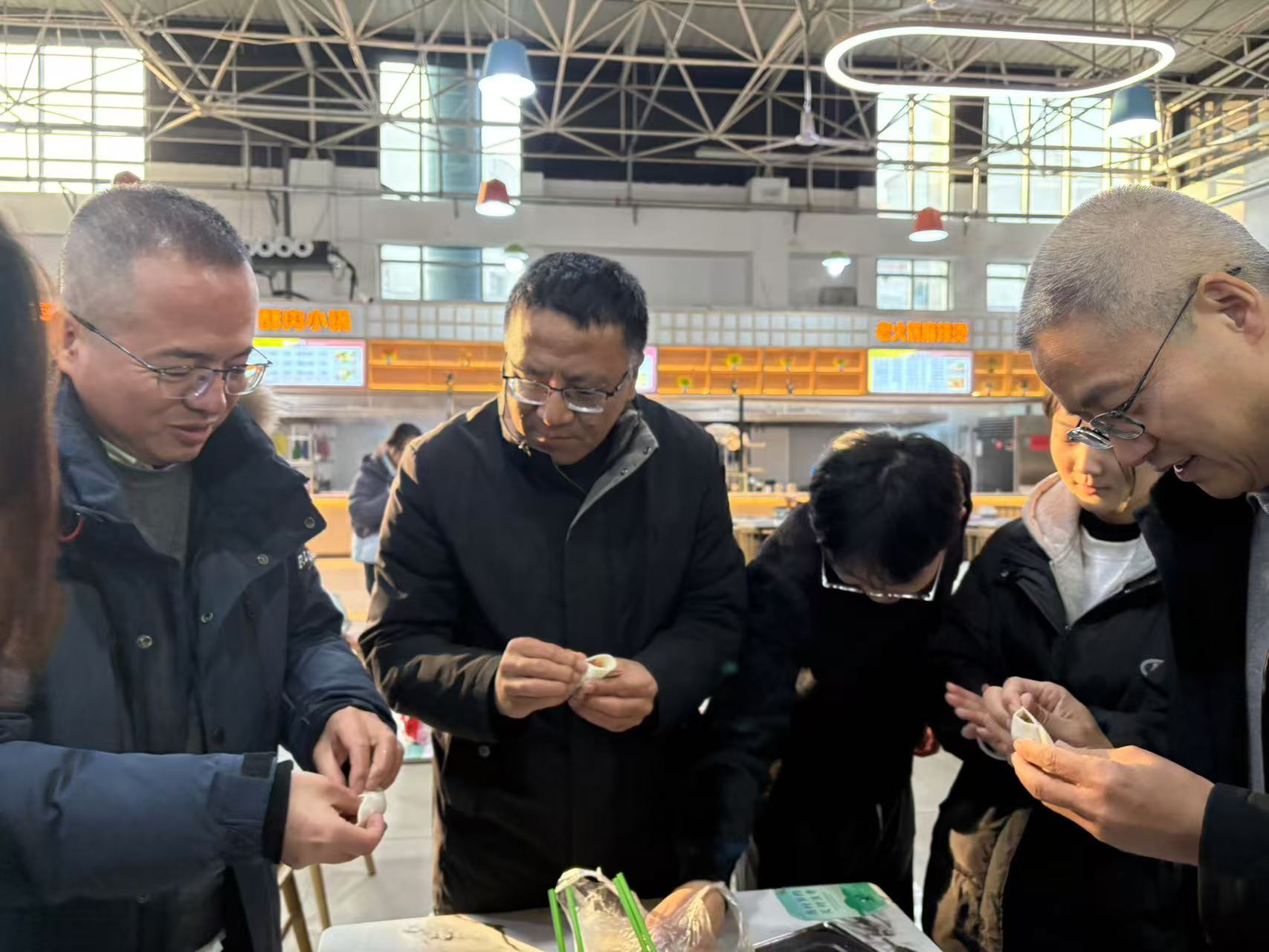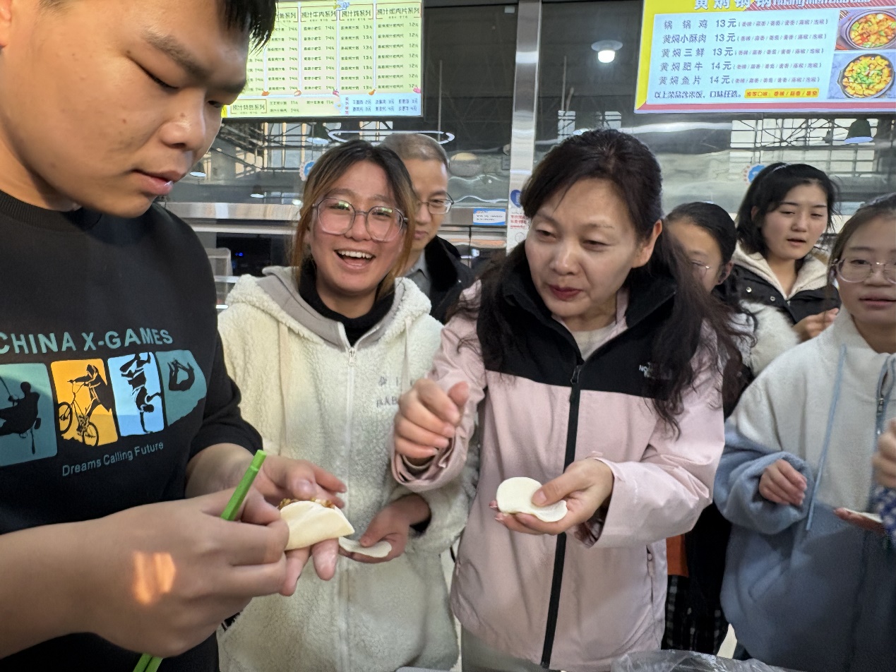 活动在贺兰山校区兰馨苑食堂拉开帷幕。公司领导和书院领导亲临现场,与同学们一起动手包饺子、聊家常,现场气氛其乐融融。领导们详细了解了同学们的学习与生活情况,并亲手示范包饺子的技巧,师生互动温馨而愉快。